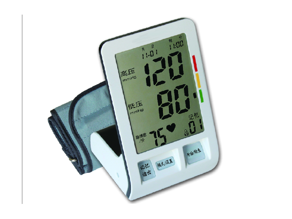 使用說明:1、測量前應避免運動、飲酒或吸煙;2、坐下放松休息5-10分鐘;3、臂帶不能捆綁太緊,也不能太松,能放進一根手指最合適;4、在測量時要將胳膊肘放在桌子上,手心向上,身體放松,將臂帶與心臟高度保持一致;5、以上準備都做好后,按下啟動/停止按鈕開始進行測量(同時伴語音提示)氣泵自動充氣,此時應保持放松,測量期間不要移動或抖動手臂,正常呼吸,不要與人交談。6、達到適當加壓值后,氣泵停止充氣并開始緩慢泄壓,如果未達到適當加壓值,氣泵會繼續(xù)自動充氣直到達到該值。7、測量過程中,當偵測到心跳時,屏幕會顯示一個閃爍的心形符號。8、血壓計完成測量后屏幕顯示高壓、低壓和脈搏值,數值會一直呈現(xiàn)到啟動/停止按鈕關掉為止,若忘記關血壓計,本血壓計會在3分鐘后自動關機。9、在測量過程中,若檢測到兩次以上瞬間心跳節(jié)奏超過心跳節(jié)奏上下25%的范圍,顯示測量結果時,將出現(xiàn)心律不齊圖標。10、測量過程中如感覺不舒服,必須終止血壓的測量,你可按下啟動/停止按鈕,血壓計會立刻釋放出綁帶內的空氣。注意事項:1、使用過程中,臂帶不能捆綁太緊,也不能太松,能放進一根手指最適合。2、在測量時要將胳膊肘放在桌子上,手心向上,身體放松,將臂帶與心臟高度保持一致,如不將臂帶正確綁好,位置放置正確,可能無法測得正確之血壓。3、不可抽煙、深呼吸、說話及蠕動,否則會影響測量結果。4、更要注意的是,在使用臂式家用型電子血壓計的過程中,不能在附近使用手機,手機可能會導致結果有差異。