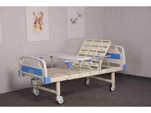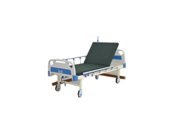 ABS Sing-crank Manul Care BedSpecification:2120*970*485mm (L*W*H)Description: Single-crank, epoxy coated frame, aluminum side rails, self-protectde system of the crank, skidproof and waterproof feet covers. ABS board of bed head and foot.The bed surface is made of imported cold steel plate by impact molding, to remove rust by ultrasonic, and coated by electrostatic powder coatings spraying to beanti-impact and fadeless. Option:Deluxe castor, over-bedtable