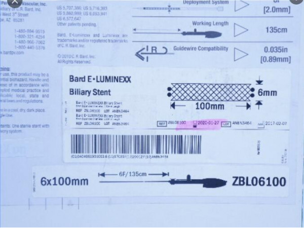 產(chǎn)品名稱:巴德膽道支架(商品名:Bard E-Luminexx)、膽道支架、 E-Luminexx產(chǎn)品型號:ZRL06100醫(yī)療器械注冊證編號:國食藥監(jiān)械(