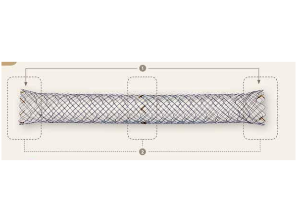 該支架為鎳鈦合金編織,覆膜材料為硅樹脂,分為全覆膜和中間覆膜,全覆膜帶有取出繩。該產(chǎn)品主要應(yīng)用于原發(fā)或繼發(fā)的惡性/良性腫