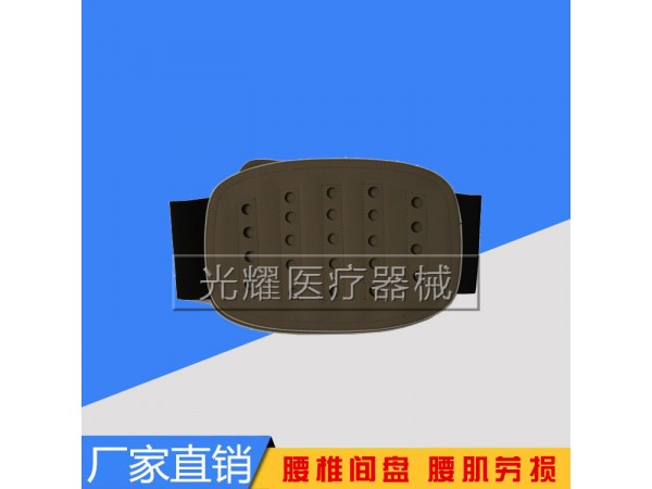 特點:具有透氣孔,夏天使用清爽。 產(chǎn)品冬夏兩用(夏天中間軟墊可取下),內(nèi)置彈力鋼板,用于保健護腰(如司機)、腰痛、腰椎間盤突出患者 使用范圍: 1,腰椎病腰積勞損等腰椎綜合癥的預(yù)防和輔助治療; 2,腰椎手術(shù)后或腰椎間盤突出癥康復(fù)期的穩(wěn)定; 3,從事體力勞動及年老體虛者腰部的保護和支撐; 4,用于腹部偏大者收腹,以保持體形健美 使用方法: 1,根據(jù)腰圍大小,自行調(diào)節(jié)合適的松緊度; 2,將腰帶底片對準(zhǔn)腰部,寬邊朝下,窄邊朝上, 3,磁鋼片對準(zhǔn)腰間病灶,束緊腰帶,不得與皮膚接觸,隔內(nèi)衣使用。 4,將腰帶的主體部分貼緊腰患部,調(diào)整松緊帶到舒適的程度,扣緊,也可根據(jù)局部需要而挪動。 供應(yīng)商:宇光醫(yī)療器械