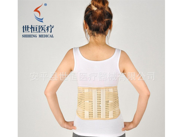 本產(chǎn)品采用高檔進口高彈力松緊帶作成,具有良好的透氣性。背部有鋼板固定支撐。其作用原理為:利用內(nèi)加金屬條增強的布帶來束裹住軀干,給骨和軟組織脊椎及其周圍肌肉的體重負擔(dān),并且限制脊柱運動,從而達到消除疼痛的目的。適用于骨刺及腰部酸痛、老年骨質(zhì)病癥、脊椎受損復(fù)健。