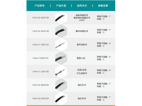 手術(shù)應(yīng)用:扁桃體,懸雍垂軟腭成形術(shù),舌體部分切除,鼻竇手術(shù),鼻腔增生組織產(chǎn)品型號:VAM-Q-4630130訂貨代碼:VA7211、VA7212、