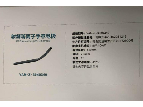 批發(fā)一次性使用等離子手術(shù)刀頭 內(nèi)窺鏡手術(shù)刀頭 孔鏡使用刀頭產(chǎn)品說明:等離子手術(shù)刀頭椎間孔鏡手術(shù)射頻電極型號:VAM-Z-3040340維