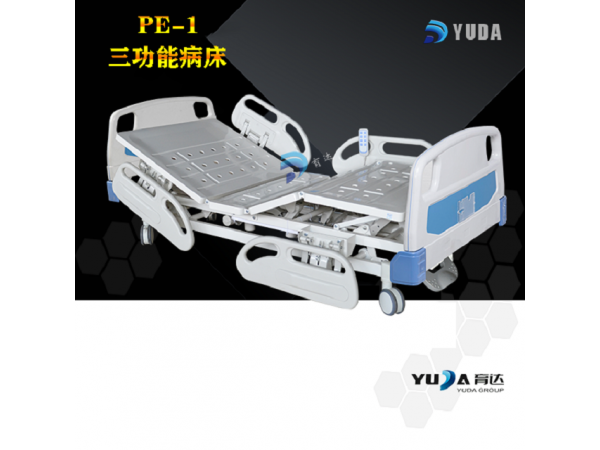 PE-1三功能病床功能:背部調(diào)節(jié)ge;65deg;,腿部調(diào)節(jié)ge;35deg;;歐式四小護(hù)欄,上下翻轉(zhuǎn)結(jié)構(gòu);豪華中控腳輪,一體剎車;床板采用冷