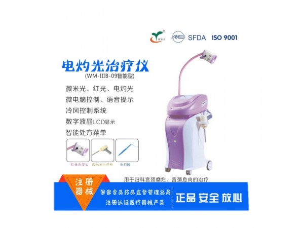 WM-ⅢB 電灼光治療儀 產(chǎn)品特點:◎機(jī)箱模具一次性成形,防水,防震,不開裂,不褪色?!蛭㈦娔X控制,語音提示,倒計時0-90分鐘提