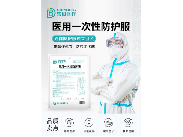 山東朱氏東貝防護(hù)服可出口魯械注準(zhǔn)20192140108【產(chǎn)品名稱】醫(yī)用一次性防護(hù)服【型號(hào)規(guī)格】連體式160、165、170、175、180、185【