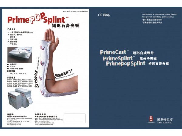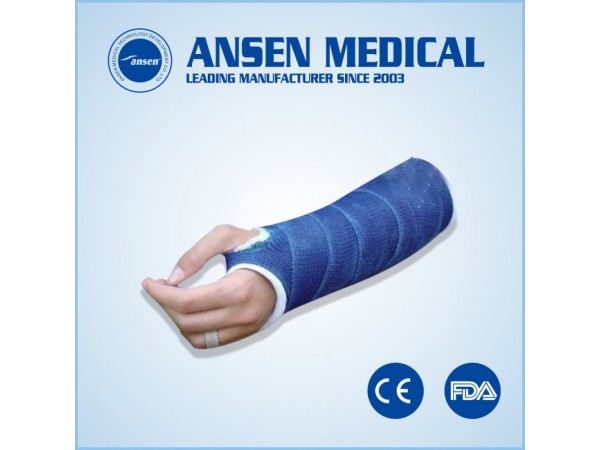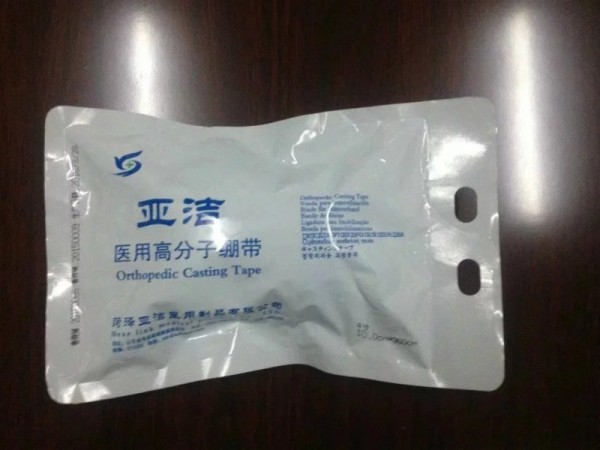 產(chǎn)品特點:1)強度高:硬度是傳統(tǒng)石膏繃帶的20倍2)重量輕:材質輕,固定用材少,相當于石膏重量的1/5,厚度的1/3,減輕患處的負荷3)硬化快:打開包裝后3-5分鐘開始硬化,20分鐘即可承重,石膏繃帶要24小時才能完全硬化4)透氣性好:獨有的網(wǎng)狀編制技術具有良好的透氣性,防止出現(xiàn)皮膚濕熱、瘙癢等問題5)透X線:對放射線有極佳的通透性,X光效果圖清晰,石膏繃帶要拆才能拍片6)防水性:吸水率比傳統(tǒng)石膏繃帶的少85%,可以戴著繃帶洗澡7)操作簡便:可塑性好8)舒適安全:對醫(yī)生來說,操作簡單實用;對于患者不會產(chǎn)生繃帶變干后皮膚發(fā)緊,發(fā)癢等不適癥狀9)無污染:使用過的產(chǎn)品可以進行充分燃燒,材質焚化不產(chǎn)生任何污染物10)拆除方便:采用電動石膏鋸拆除安全方便產(chǎn)品規(guī)格:5CMX3.6M7.5CMX3.6M10CMX3.6M12.5CMX3.6M15CMX3.6M