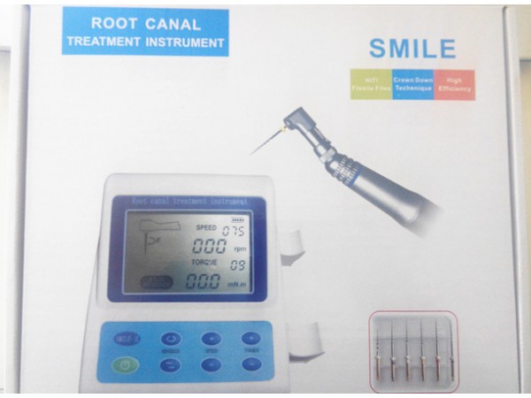 RCTI-DY(Ⅰ)型根管治療儀是我公司應(yīng)用微電子控制技術(shù)開發(fā)研制的,為了減輕醫(yī)生的工作強(qiáng)度,并制備出更標(biāo)準(zhǔn)的根管而生產(chǎn)的。 產(chǎn)品特性: 1、電池電量顯示(顯示內(nèi)置電池的電量,充電時會閃爍),扭矩顯示(顯示電動馬達(dá)工作時的力矩),轉(zhuǎn)速顯示(100~625r/min)每檔速度遞增或遞減25r/min。 2、本機(jī)有10種記憶功能,醫(yī)生可以根據(jù)不同型號的擴(kuò)大針來設(shè)置不同的扭矩和轉(zhuǎn)速,方便操作。 3、機(jī)器在擴(kuò)大根管的過程中,擴(kuò)大針扭矩超過設(shè)定值后,為防止測穿及斷針,電動馬達(dá)會自動反轉(zhuǎn),醫(yī)生亦可根據(jù)實際情況調(diào)節(jié)機(jī)器的手動翻轉(zhuǎn)。 4、機(jī)器采用超大的液晶屏顯示,能夠在屏幕上很直觀的看到機(jī)器運(yùn)轉(zhuǎn)的情況。 5、為了減輕醫(yī)生的經(jīng)濟(jì)負(fù)擔(dān),更好地做好消毒問題,本機(jī)選用的1:1的低速彎機(jī)頭。 6、內(nèi)置充電電池,操作更方便,更人性化。