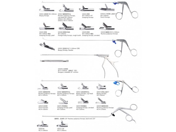型號 名稱 數(shù)量 單位8880.543 PANOVIEW PLUS內窺鏡,30度視角,直徑4mm,工作長度175mm 1 根8885.031 鏡鞘,直徑5.6mm,能自動閉合,2灌洗通道 1 根8885,11 棱形錐 1 根8885.121 閉孔器 1 根8302.09 引流管,一個開關,內徑2.3mm,直徑3.2mm,工作長度80mm 1 根8302.101 斜頭穿刺鞘,直徑2.3mm,工作長度103mm 1 根8399.95 探鉤,直徑2.5mm,工作長度115mm,帶刻度 1 根8404.017 活檢鉗,左90度彎,外鞘直徑3.4 mm,工作長度130mm 1 把8404.018 活檢鉗,右90度彎,外鞘直徑3.4mm,工作長度130mm 1 把8488.951 咬鉗,直鏟形,直徑3.4mm,工作長度130mm 1 把8488.063 咬鉗,鋸齒狀鉗嘴,前部15度向上成角,直徑3.4mm,工作長度130mm 1 把8488.025 咬鉗,前部15度向上成角,直徑3.4mm,工作長度130mm 1 把8488.04 鉤狀剪刀,直形,直徑3.4mm,工作長度130mm 1 把8403.1 活檢/取出鉗,帶釘齒,對開,直徑4.5mm,工作長度130mm 1 把8403.001 O’Conner半月板鉗,直徑4/7mm,工作長度105mm 1 把8436.101 直手術刀,工作長度125mm 1 把8436.201 鉤狀刀,工作長度125mm 1 把8436.251 香蕉狀刀,工作長度125mm 1 把8436.301 直關節(jié)刀,工作長度125mm 1 把8211.661 mini型反向咬切鉗鉗頭,可旋轉,工作長度110mm 1 個8211.601 mini咬切鉗手柄 1 個 刨削系統(tǒng) 型號 名稱 數(shù)量 單位2303.001 刨削動力系統(tǒng)POWER CONTROL 2303,含有:腳踏開關 1 臺8564.121 動力刨削手柄,M4,最高轉速6000轉 1 個8568.011 切割刀頭,齒狀,直徑4.5mm,工作長度126.5mm 1 根8568.031 切割刀頭,卵圓形,刀片,直徑4.5mm,工作長度126.5mm 1 根8568.051 切割刀頭,內外帶齒,直徑4.5mm,工作長度126.5mm 1 根8568.201 切割刀頭,刀片,直徑4.5mm,工作長度126.5mm 1 根8569.301 切割刀頭,圓頭,直徑5.5mm,工作長度126.5mm 1 根