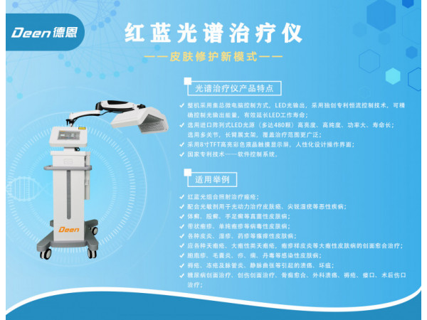 一、紅藍光產(chǎn)品介紹:紅藍光治療儀選用窄譜光源所發(fā)出的是一種冷光,不產(chǎn)生高熱,不會灼傷皮膚,它將光能轉(zhuǎn)為細胞內(nèi)能量,是治療