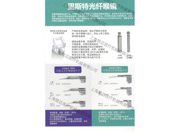 注冊(cè)證編號(hào):國(guó)械住進(jìn)20162224738了解更多喉鏡詳情請(qǐng)見(jiàn)本公司網(wǎng)站以色列舒克曼光纖喉鏡由喉鏡片(即窺視片)、手柄、燈泡和可拆