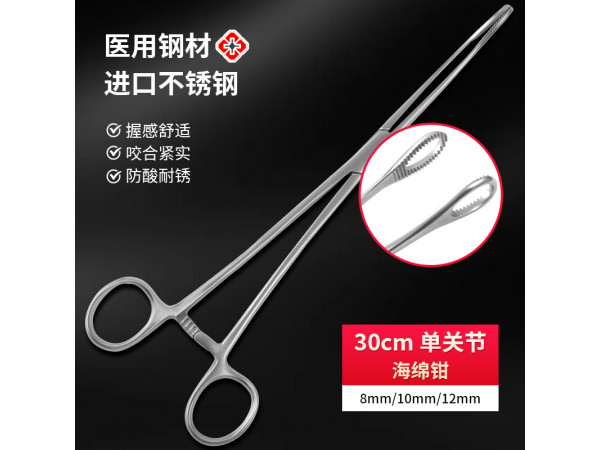 海綿鉗也叫持物鉗,分為有齒紋、無(wú)齒紋;有齒紋主要用于夾持、傳遞已消毒的器械、縫線、縫針、敷料、引流管等。也用于鉗夾蘸有消