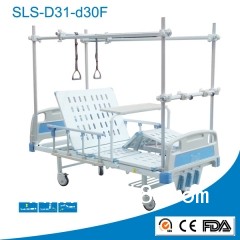 ◆ 三功能骨科牽引床,通過(guò)搖手調(diào)整背板和腿板的角度以及整床的高度