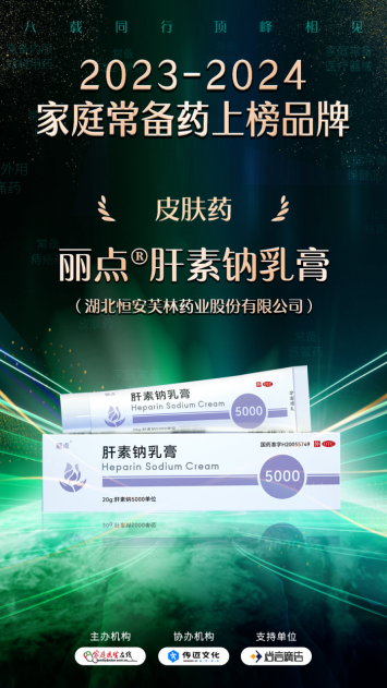 2024年11月19日,“2023-2024家庭常備藥、家庭常備營(yíng)養(yǎng)保健品、家庭常備醫(yī)療器械及消毒用品上榜品牌”頒獎(jiǎng)典禮在武漢舉行。湖北恒安芙林藥業(yè)股份有限公司(以下簡(jiǎn)稱恒安芙林)旗下產(chǎn)品麗點(diǎn)??肝素鈉乳膏成功入選“2023-2024家庭常備藥上榜品牌”。