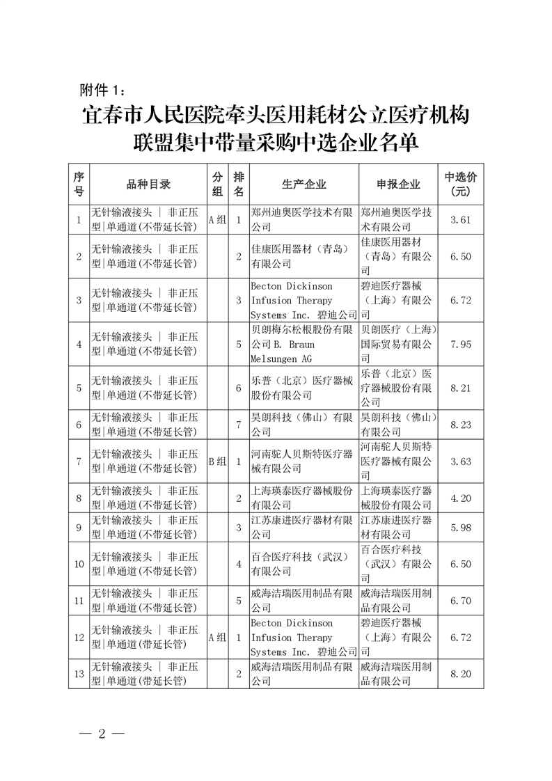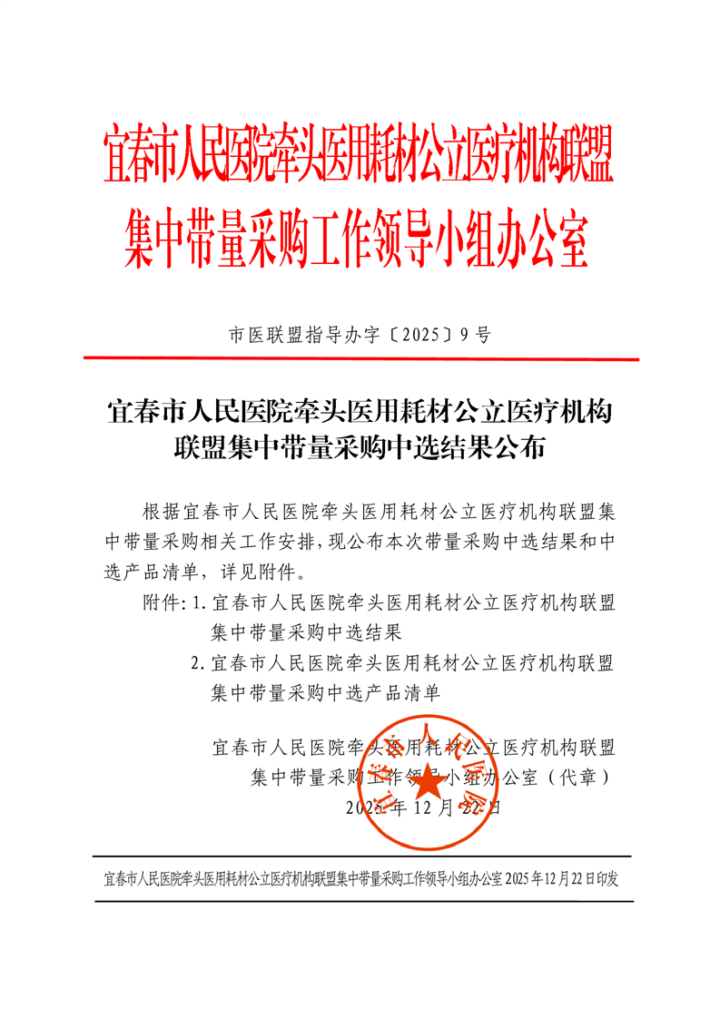 宜春市人民醫(yī)院牽頭醫(yī)用耗材公立醫(yī)療機(jī)構(gòu)聯(lián)盟集中帶量采購中選結(jié)果公布