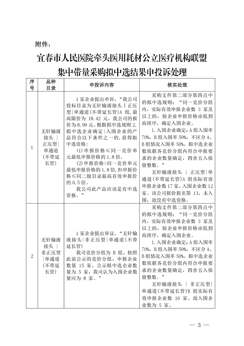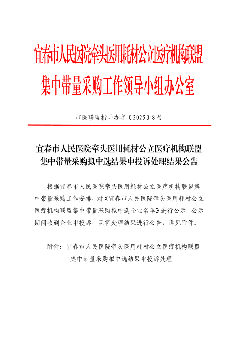 宜春市人民醫(yī)院牽頭醫(yī)用耗材公立醫(yī)療機(jī)構(gòu)聯(lián)盟集中帶量采購(gòu)擬中選結(jié)果申投訴處理結(jié)果公告