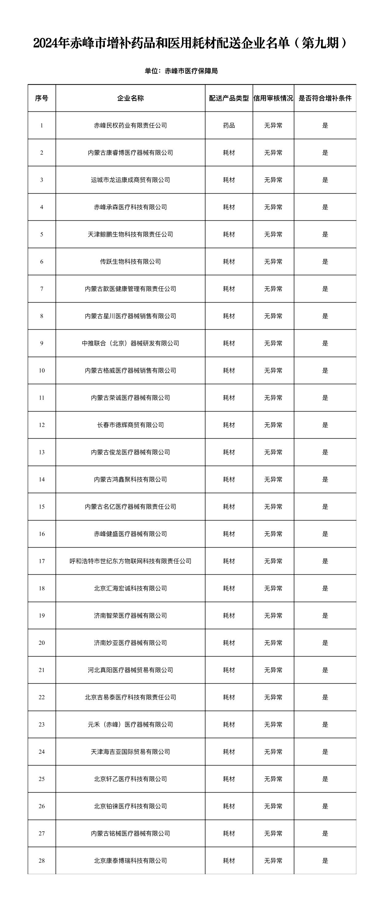 2024年赤峰市增補(bǔ)藥品和醫(yī)用耗材配送企業(yè)名單(第九期)