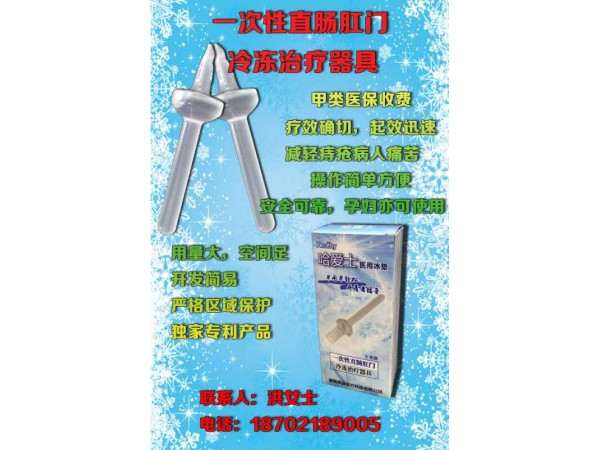 產(chǎn)品說明:直腸肛門冷凍器具,全國(guó)醫(yī)保甲類收費(fèi),收費(fèi)編碼:310904006. 我公司推出的直腸肛門冷凍器具是國(guó)內(nèi)治療痔瘡的新手段。止血,鎮(zhèn)痛