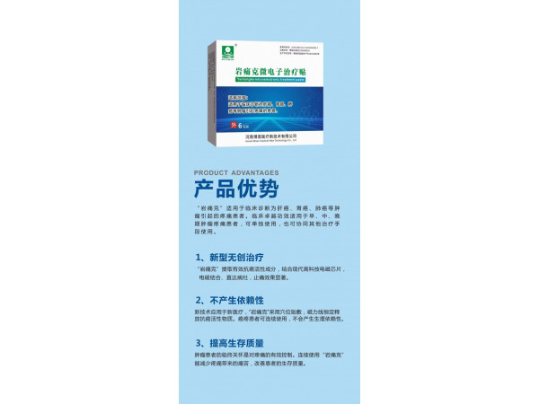 產(chǎn)品說(shuō)明:全國(guó)獨(dú)家帶芯片裝置的腫瘤止痛產(chǎn)品,榮獲兩項(xiàng)發(fā)明專利和一項(xiàng)實(shí)用新型專利,高科技電磁芯片加抗癌活性提取成分,電磁藥結(jié)合,穴位