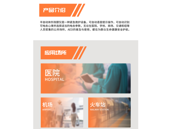 產(chǎn)品說明:用于沒有反應(yīng)、沒有呼吸、沒有脈搏的疑似心臟驟停患者進(jìn)行體外除顫,適用于體重≥25公斤的成人及小兒(使用成人電極片)以及體重