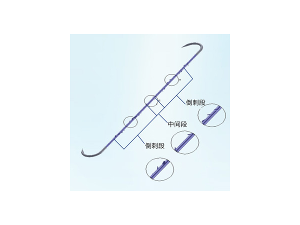 產(chǎn)品說明:1.適用范圍 本設(shè)備適用于軟組織縫合,使用時無需打結(jié)。2.產(chǎn)品特點(diǎn) 非吸收自封外科縫線的縫線表面具有反向的微小均勻分布的倒鉤,