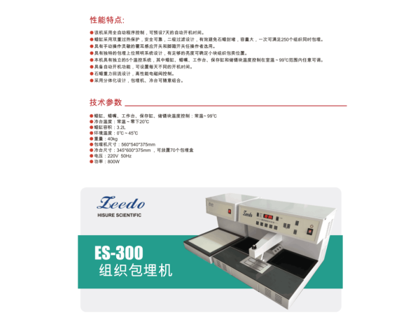 產(chǎn)品說(shuō)明:●配置一星期自動(dòng)開機(jī)功能●帶時(shí)間星期顯示●具有定時(shí)開機(jī)功能,停電后來(lái)電仍能自動(dòng)定時(shí)開機(jī)●包埋臺(tái)、冷凍臺(tái)和保存臺(tái)分體式自由排列,全對(duì)稱設(shè)計(jì)適合左右不同的用手習(xí)慣●獨(dú)特的...