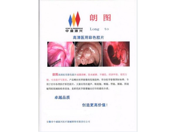產(chǎn)品說明:朗圖高清醫(yī)用彩色膠片成像清晰、防水耐磨、不褪色、經(jīng)濟(jì)環(huán)保、使用方便,可直接手寫簽名。產(chǎn)品順應(yīng)世界影像的發(fā)展趨勢,符合醫(yī)學(xué)