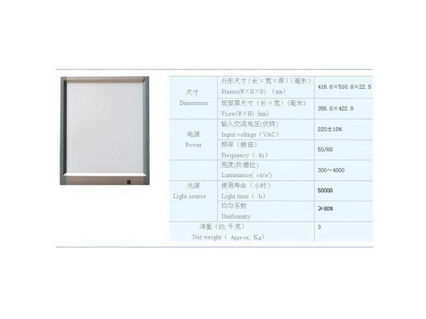 產(chǎn)品說(shuō)明:LED3000單聯(lián)不可調(diào)光觀型片燈,觀察屏亮度為3000cd/m2,能閱讀普通模擬照片及數(shù)碼拷貝片。觀片燈的外形尺寸:416*509*22.5mm ,