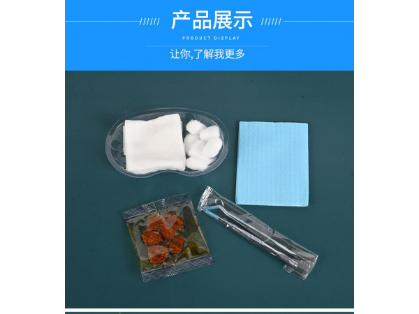 產(chǎn)品說明:產(chǎn)品配件:手套、鑷子、棉球、無紡布塊、傷口貼、碘伏棉球、鋪巾等,可以根據(jù)客戶需要調(diào)整。