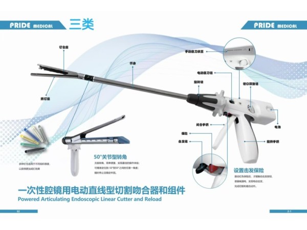 產(chǎn)品說明:一次性電動腔鏡用直線型切割吻合器及組件可用于體內(nèi)器官、組織的離斷、切除和/或建立吻合。適用于胸外科手術(shù)、胃腸外科手術(shù)及肝