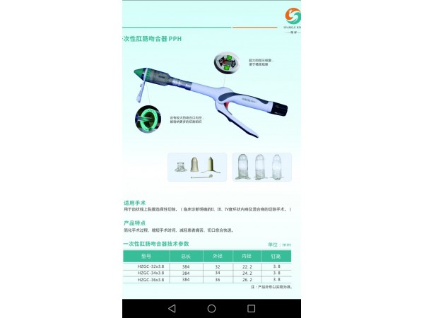 產(chǎn)品說明:適用于齒狀線上黏膜選擇性切除。更大的吻合口內(nèi)徑,容納更多組織。超大的指示視窗,便于精準觀察。新型的尾翼設(shè)計,防滑且省力。
