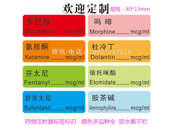 產(chǎn)品說明:麻醉注射器標(biāo)簽產(chǎn)品說明:尺寸:長80*寬17mm 規(guī)格多種顏色:綠色/紅色/黃色/藍(lán)色/灰色多種色可按要求定做和選購。包裝:500個(gè)一卷