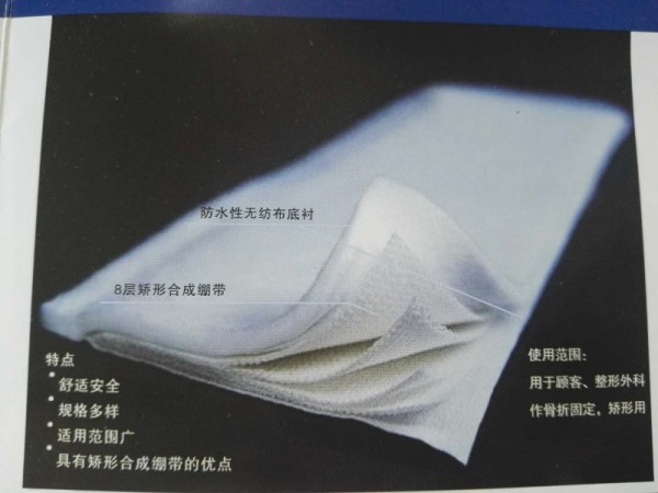 產(chǎn)品說明:【產(chǎn)品結(jié)構(gòu)及適用范圍】本品由玻璃纖維、聚亞安酯、聚醚二元醇、聚醚三元醇和內(nèi)外側(cè)織布構(gòu)成。適用于固定骨折部位、固定腫脹和受