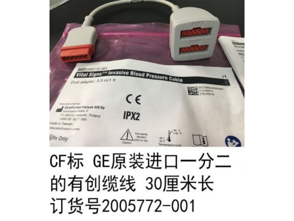 產(chǎn)品說明:CF標 GE原裝進口一分二的有創(chuàng)纜線 30厘米長 訂貨號2005772-001GE心電圖機 低端心電圖機MAC1200,MAC800 MAC400 MAC500 MAC600 MA