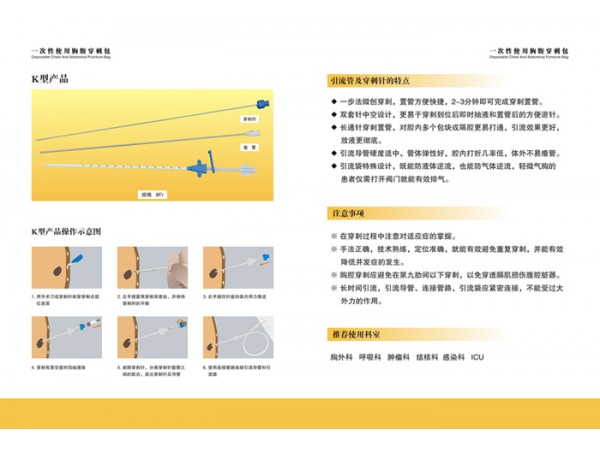 產(chǎn)品說明:該產(chǎn)品優(yōu)勢-------》可分離穿刺針的操作,使導管非常容易地進入胸腹腔內(nèi),簡化穿刺操作步驟,操作簡單,專利穿刺針放置導管方便