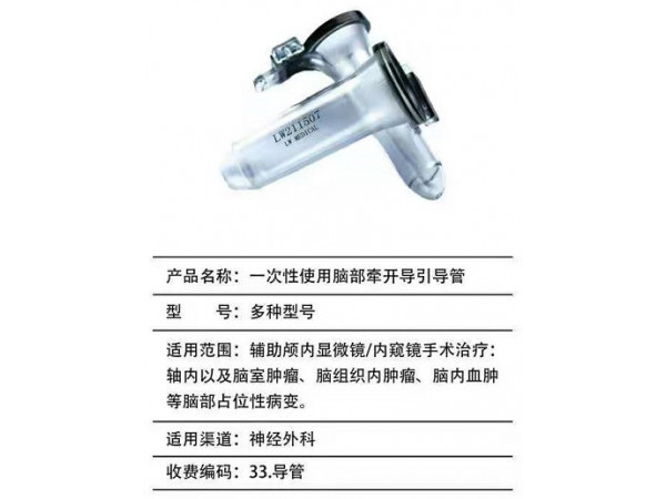 產(chǎn)品說明:我公司研發(fā)的一次性使用腦部牽開導(dǎo)引導(dǎo)管是神經(jīng)外科領(lǐng)域新型醫(yī)療器械,是外科醫(yī)生手術(shù)的重要革新。它能夠精確暴露手術(shù)部位,提供