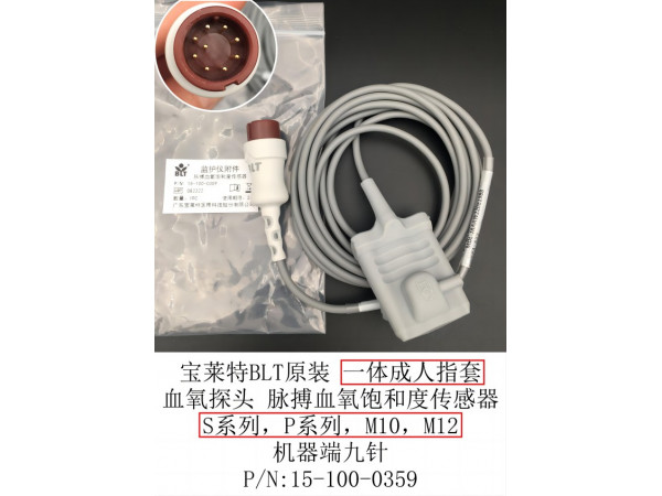 產(chǎn)品說(shuō)明:寶萊特BLT原裝 S/P/M10/M12系列一體成人指套血氧探頭 脈搏血氧飽和度傳感器 機(jī)器端九針 P/N:15-100-0359公司主營(yíng)主要品牌:GE 飛