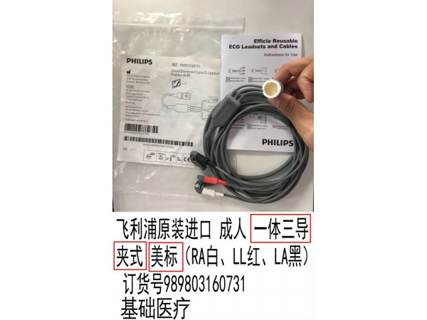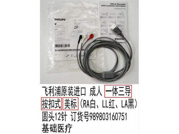 產(chǎn)品說明:飛利浦基礎(chǔ)醫(yī)療 原裝進(jìn)口 成人 一體三導(dǎo)按扣式 美標(biāo)(RA白、LL紅、LA黑)機(jī)器端圓頭12針 訂貨號(hào)989803160751飛利浦所有監(jiān)護(hù)儀如