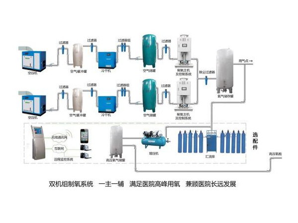 產(chǎn)品說明:醫(yī)用分子篩制氧系統(tǒng)系統(tǒng)組成醫(yī)用分子篩制氧系統(tǒng)由空壓機(jī)、氣水分離裝置、干燥機(jī)、空氣露點(diǎn)監(jiān)測(cè)裝置、多級(jí)過濾器、空氣儲(chǔ)罐、空氣