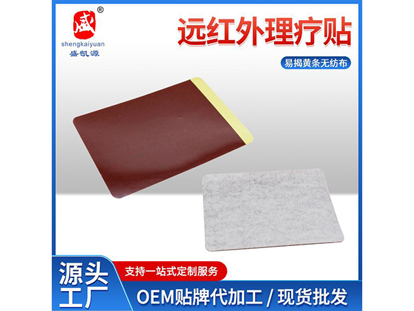 產(chǎn)品說明:產(chǎn)品名稱:遠(yuǎn)紅外理療貼適用范圍:關(guān)節(jié)炎癥、軟組織損傷、腰肌勞損等。使用方法:清潔患處,取出巴布貼揭開防粘層,將膠面貼于患處