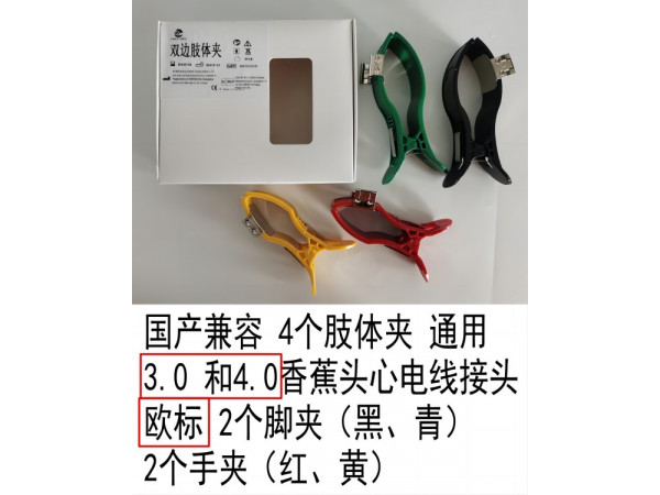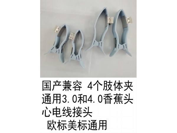 產(chǎn)品說(shuō)明:產(chǎn)品信息:國(guó)產(chǎn)兼容 4個(gè)肢體夾 四肢電極 通用3.0 和4.0香蕉頭心電線(xiàn)接頭 歐標(biāo)美標(biāo)通用 2個(gè)腳夾(大)2個(gè)手夾(小)公司主營(yíng)①原