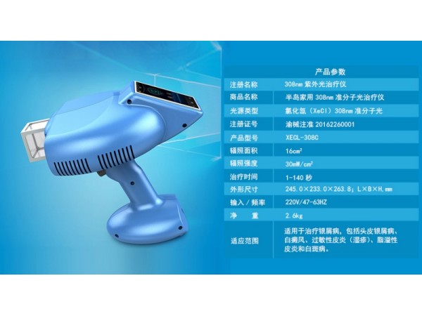產(chǎn)品說明:家用308準(zhǔn)分子光療儀用于患者在家治療,適用于白癜風(fēng)、銀屑病、過敏性皮炎、脂溢性皮炎和白斑病的治療