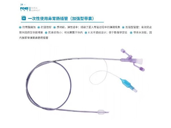 產(chǎn)品說(shuō)明:一、主要用途:適用于腸胃減壓,液體或流質(zhì)營(yíng)養(yǎng)的輸入、排(吸)液、十二指腸引流和空腸營(yíng)養(yǎng)等。二、產(chǎn)品特點(diǎn):1.管體使用聚氨酯