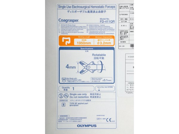 產(chǎn)品說(shuō)明:品牌:奧林巴斯 Olympus名稱:一次性熱活檢鉗,止血鉗型號(hào):FD-411QR結(jié)構(gòu)及組成:本產(chǎn)品是配合內(nèi)窺鏡使用的一次性熱活檢鉗,由聚