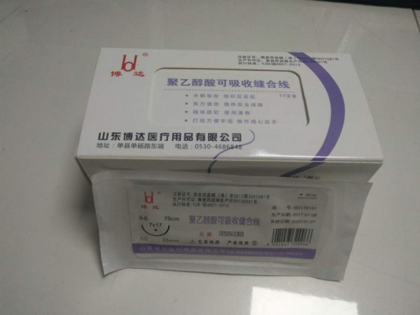 產(chǎn)品說明:1、抗張強(qiáng)度強(qiáng):山東博達(dá)聚乙醇酸PGA可吸收縫合線采用多股緊密編織而成,抗張強(qiáng)度符合標(biāo)準(zhǔn)要求。2、吸收速度快:聚乙醇酸可吸收