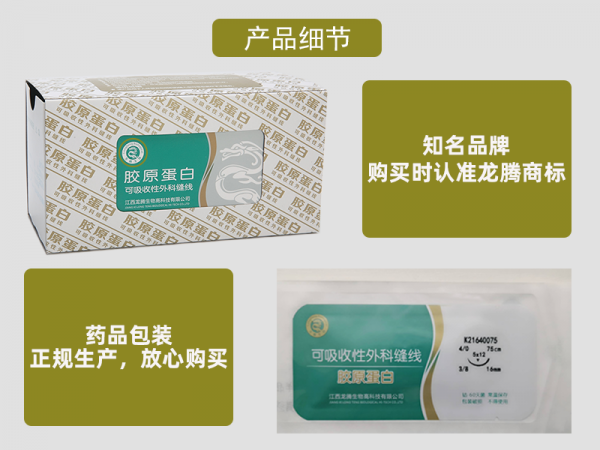 產(chǎn)品說明:江西龍騰可吸收膠原蛋白縫合線是江西龍騰的專利產(chǎn)品,穩(wěn)定的單股線結(jié)構(gòu),纖體柔軟,吸收穩(wěn)定,不留手術(shù)針孔和壓力性疤痕。操作空