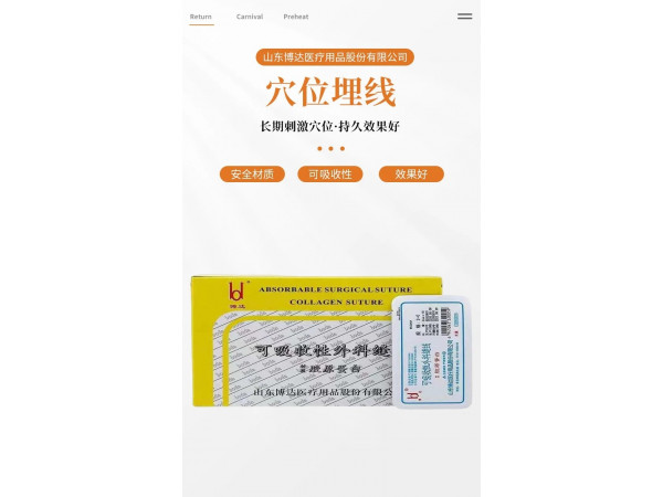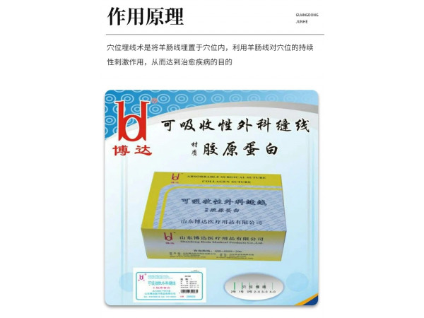 產(chǎn)品說(shuō)明:膠原蛋白穴位埋線產(chǎn)品說(shuō)明商標(biāo):博達(dá)規(guī)格:1#,0#,2-0,3-0,4-0包裝:2cm*10根/包,100包/盒,30盒/箱,一盒起訂材質(zhì):膠原蛋