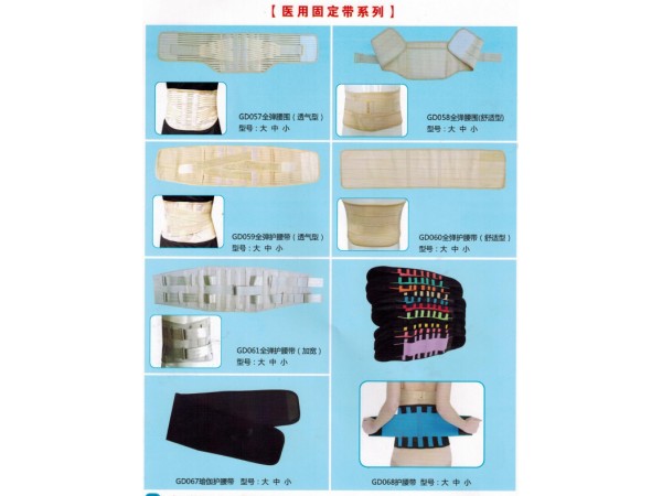 產(chǎn)品說明:性能特點: 該產(chǎn)品主要由針織布、鋼板、人造革或皮革、尼龍扣、海綿、松緊帶、鉚釘、固定環(huán)、粘扣等材料加工制成,按使用部位不同分為鎖骨固定帶、肋骨固定帶、腰圍固定...