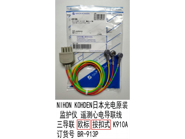 產品說明:NIHON KOHDEN日本光電原裝 監(jiān)護儀 遙測心電導聯(lián)線 三導聯(lián)歐標按扣式K910A 訂貨號BR-913P光電監(jiān)護儀BSM-1700 BSM-3000 BSM-6301C6
